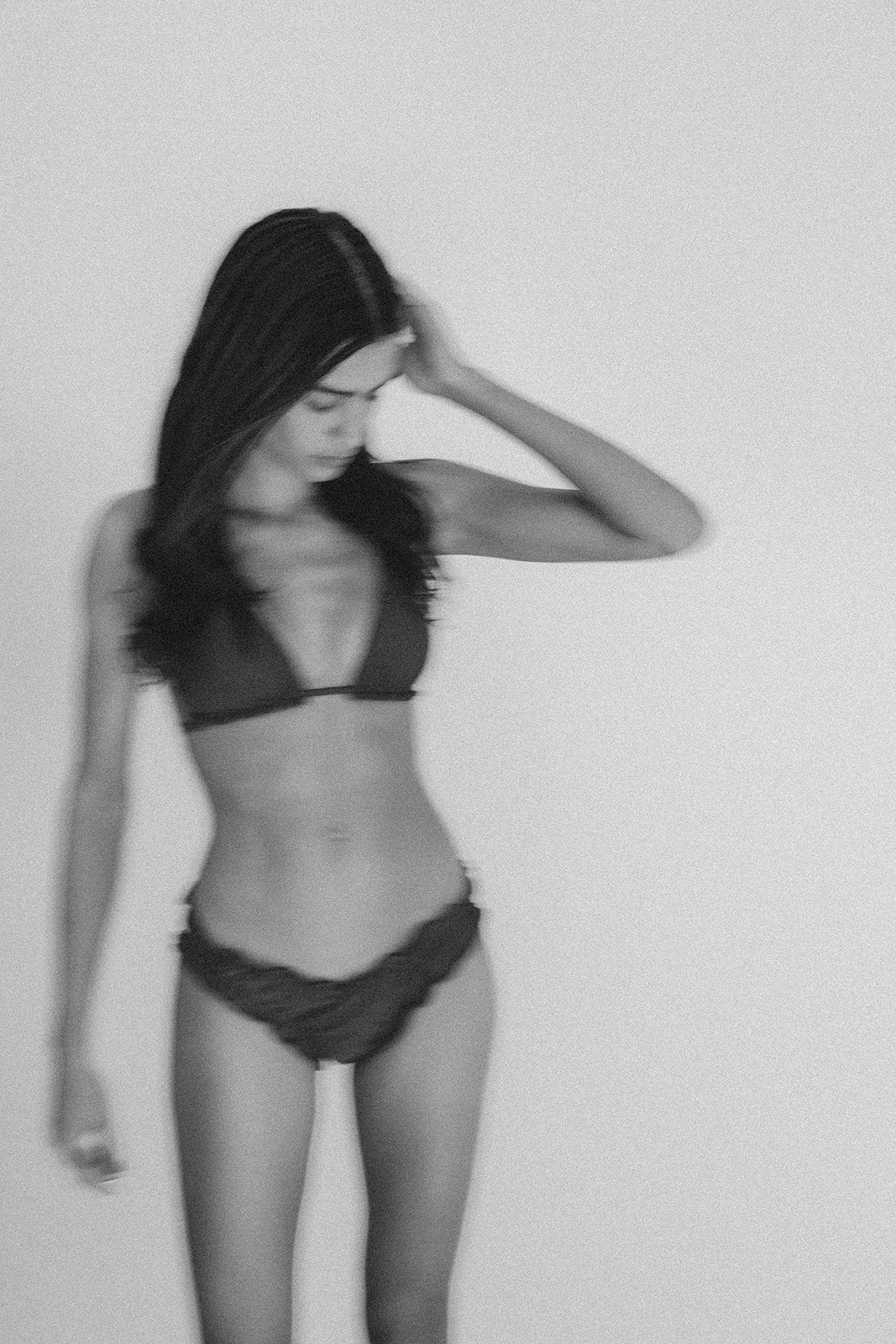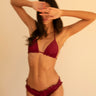 Maddy es un top clásico tipo triángulo con un pequeño detalle de ruffle en la parte de abajo tiene tiras largas y delgadas para amarrar en el cuello y espalda para ajustar el fit deseado.